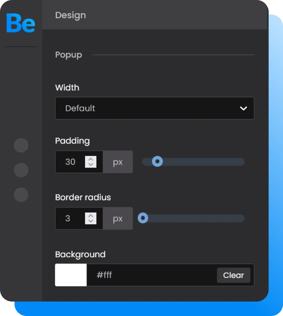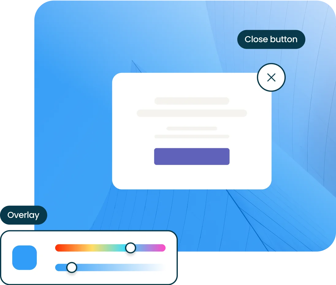 Style each element individually or all at once, visually, the way you like. Popup, Overlay or Close button? Define its colors, set animations, adjust sizes & much more. Styling elements has never been easier.