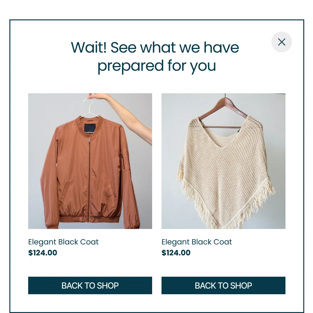 Create custom popups without having to write a single line of code or choose from predefined ones and adjust to your needs.