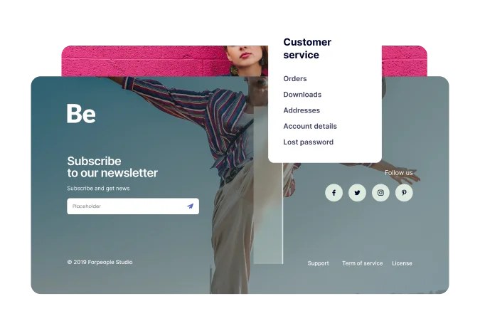 Build your footer with use of our builder, customize all elements and make it looking perfect on every device.