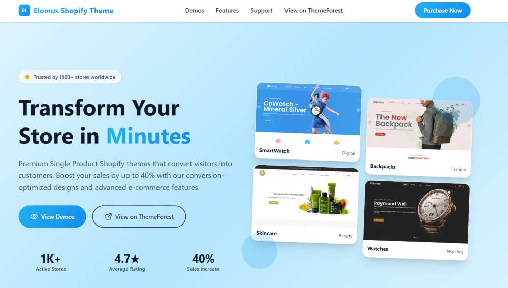 You get 6-12 months of updates, documentation, developer support tickets, and multiple demo variations. Premium website templates include conversion-optimized layouts tested with real stores.