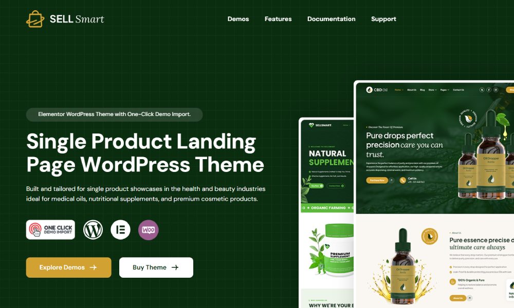 Built for one flagship item. Perfect for product landing pages where the entire page focuses on a single offering with strong visuals and a direct add-to-cart button.