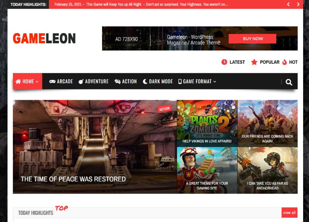 Structured for gaming news websites with review score systems, game database layouts, and editorial blog design sections. Support for high-volume content publishing.