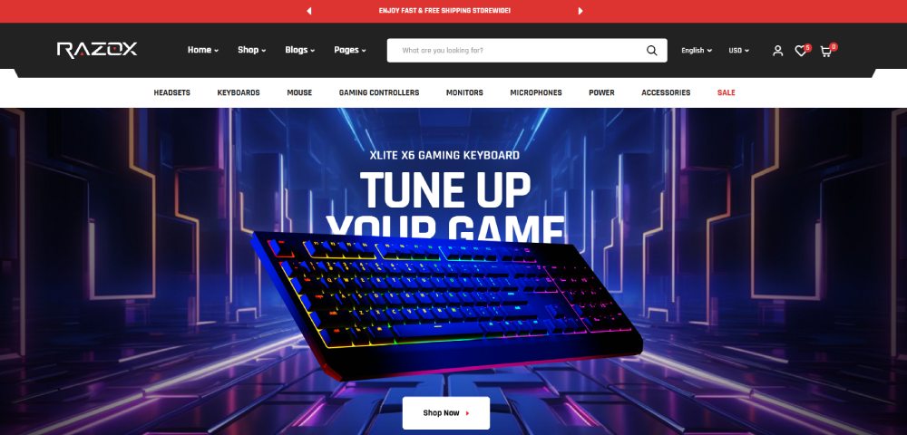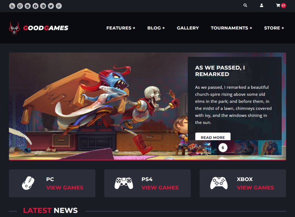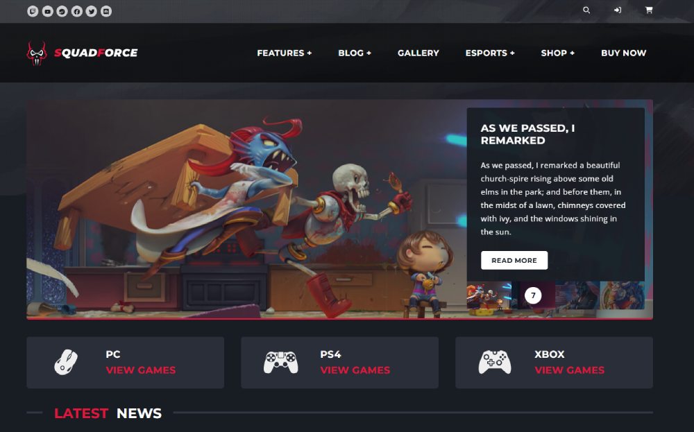 Most gaming themes run on WordPress, HTML5, or website builders like Webflow and Squarespace.