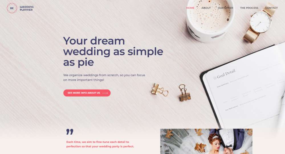 A wedding planner website template is a pre-built website layout designed for bridal consultants, event coordinators, and wedding planning businesses.