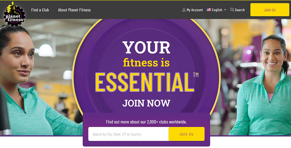 Budget gyms pick approachable colors: Planet Fitness uses purple and yellow to feel welcoming rather than intimidating.