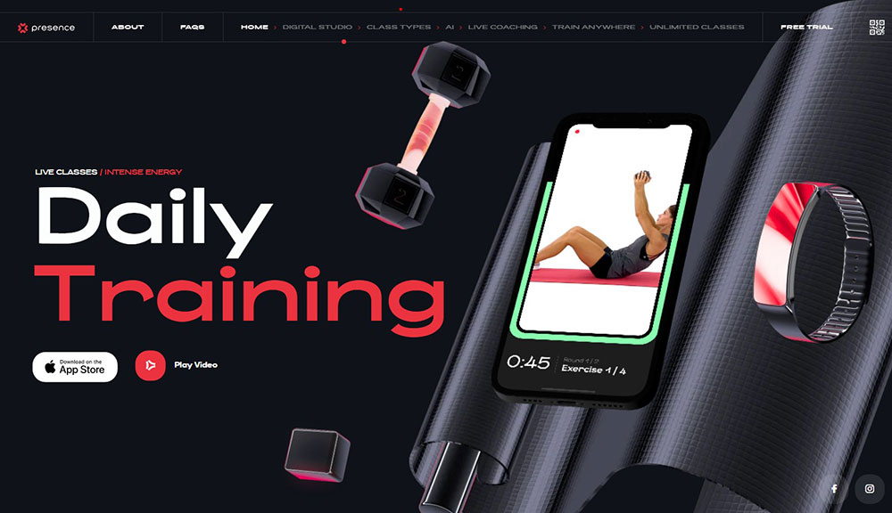 Video backgrounds showing workouts in action create emotional connection immediately.