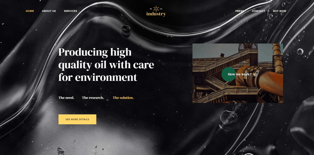 Industrial sites tend toward clean layouts with generous white space. Technical information needs room to breathe.