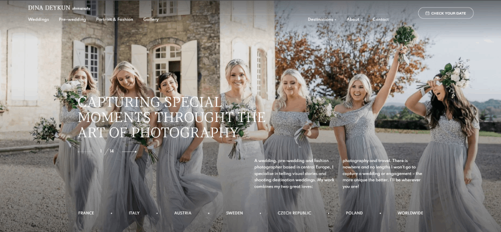Standard portfolio sites display work. Wedding photographer websites sell an experience.