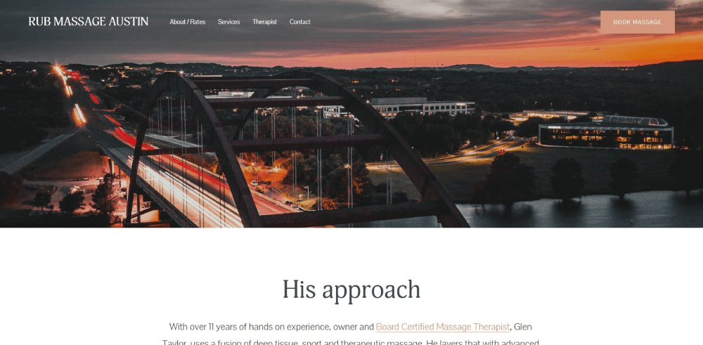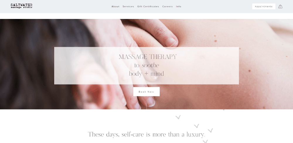 You'll see real sites from solo practitioners and multi-location spas. Clean layouts that build trust. Booking integrations with Acuity Scheduling, MassageBook, and Vagaro that reduce friction.
