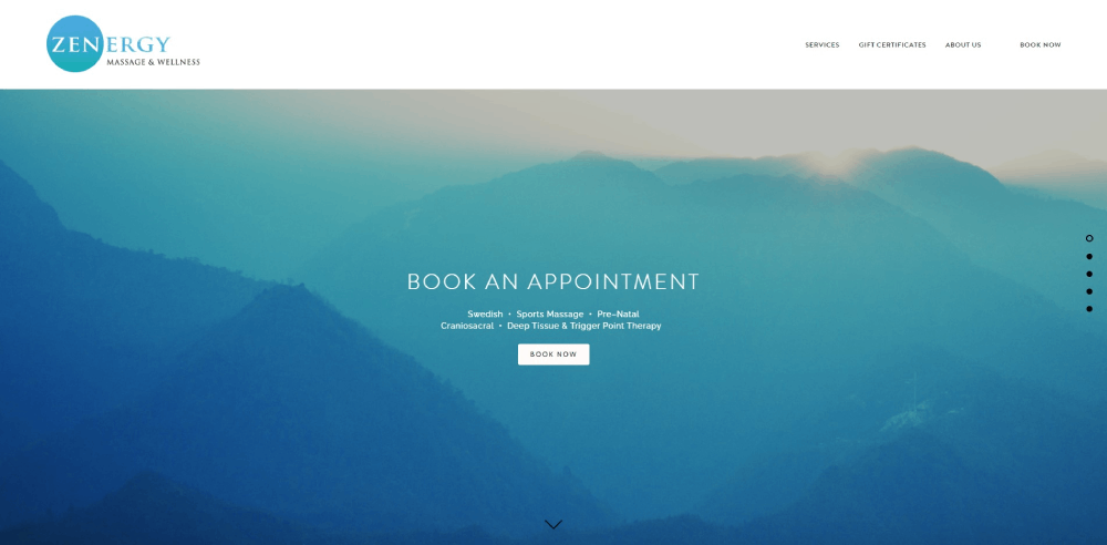 A well-built massage therapy homepage combines online booking integration, service menu displays, and trust signals like credentials and client testimonials.