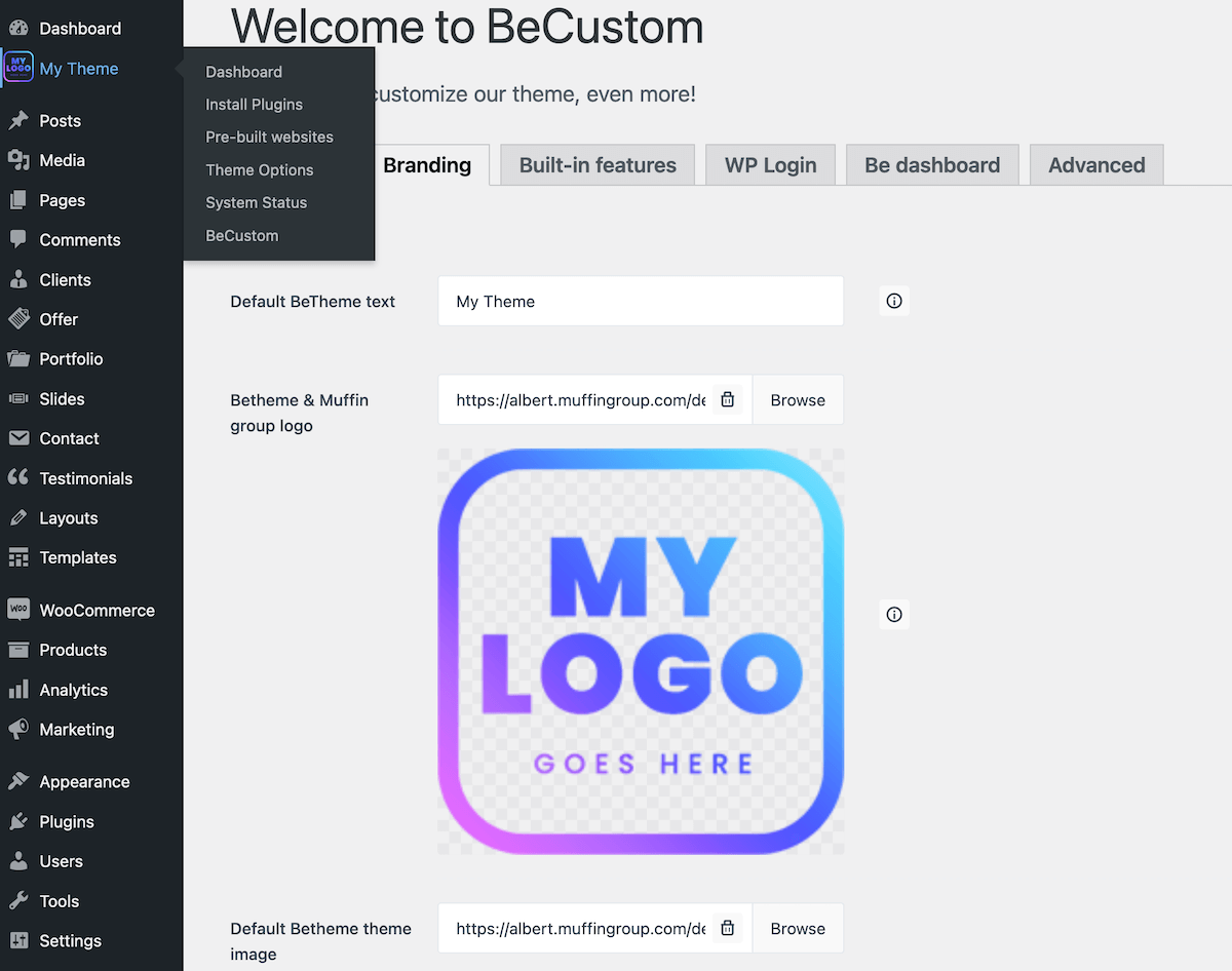 Built in-house add-on, perfect for agencies and web developers will let you rebrand Be & WordPresss Admin to your own product by replacing all the Be & Muffin logos with own.