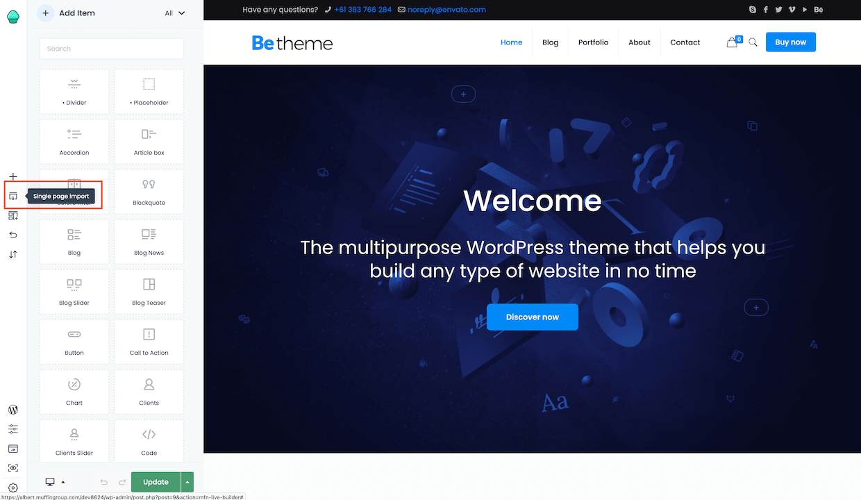 Whenever you find a single page you like but for some reason you can't import the entire pre-built website, this Single Page Import feature comes in handy.