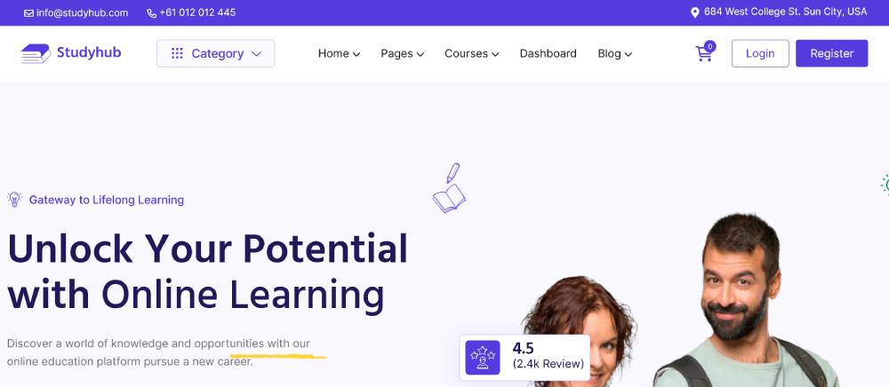 Most modern templates connect with Moodle, Canvas LMS, and Google Classroom through plugins or APIs. WordPress education themes usually include LMS compatibility built in.