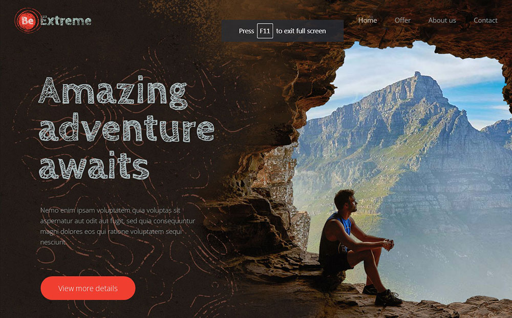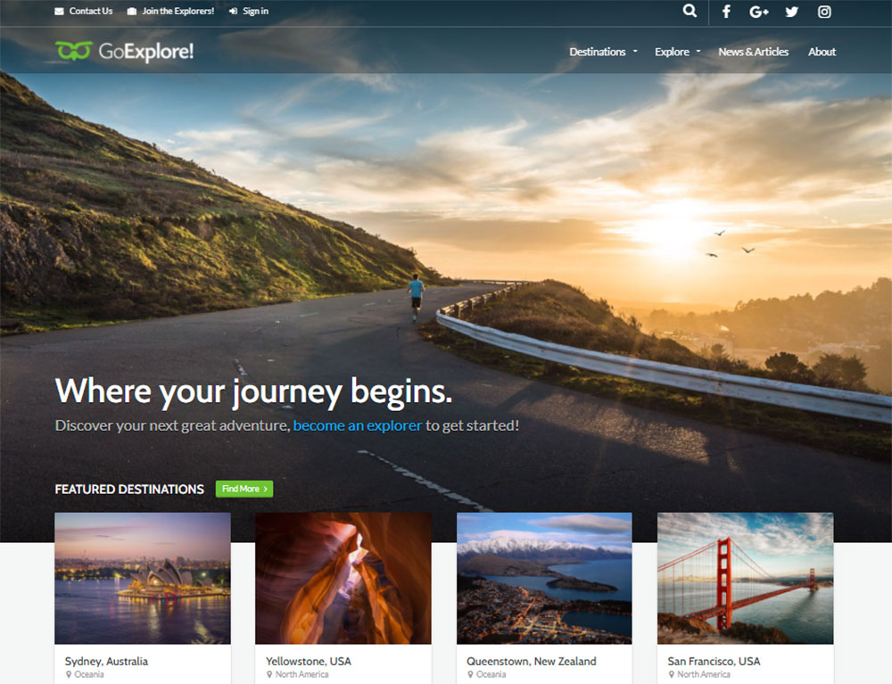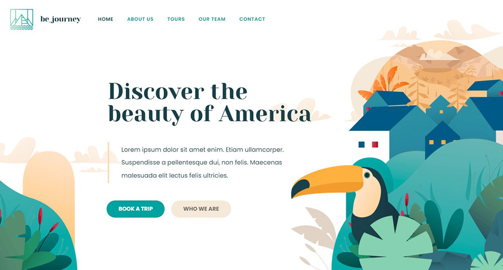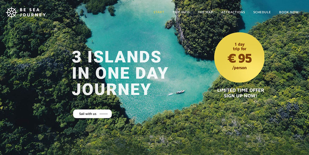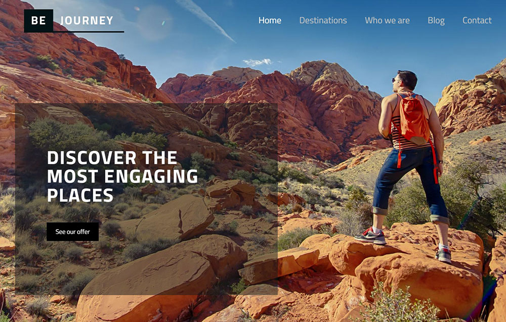 This next choice is great for making travel agency websites. The image header spans the full width of the page.