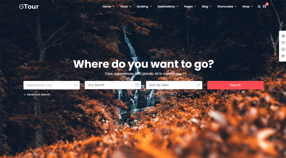 This theme sorts destinations in an accordion style. This makes it easier for visitors to find a tour that includes their favorite activity.