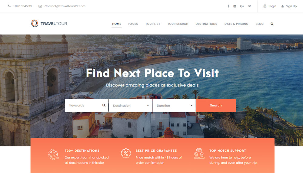 This is the ideal travel WordPress theme for travel agency websites and personal projects.