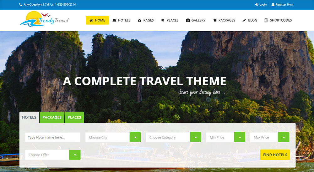 This list of travel WordPress themes ends with Trendy Travel. It is a theme for travel agencies, tour operators, and similar tourism-related companies.