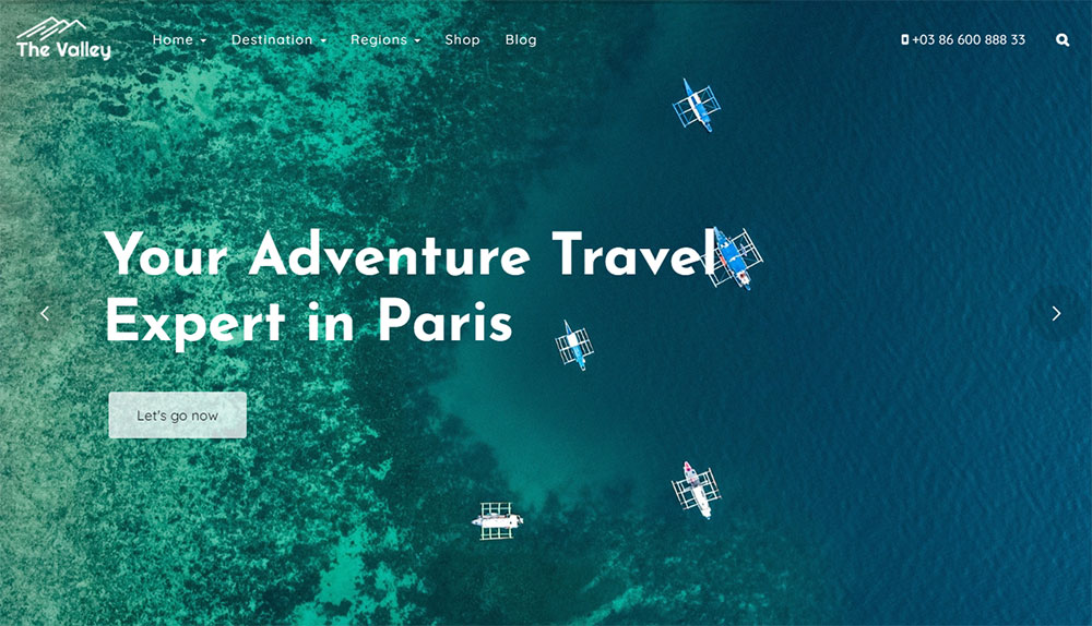 This beautiful WordPress theme features a drag-and-drop builder. So working with Valley does not require any coding knowledge. If, however, you are still reluctant to try and do it yourself, there are plenty of travel website development services online that could help you.