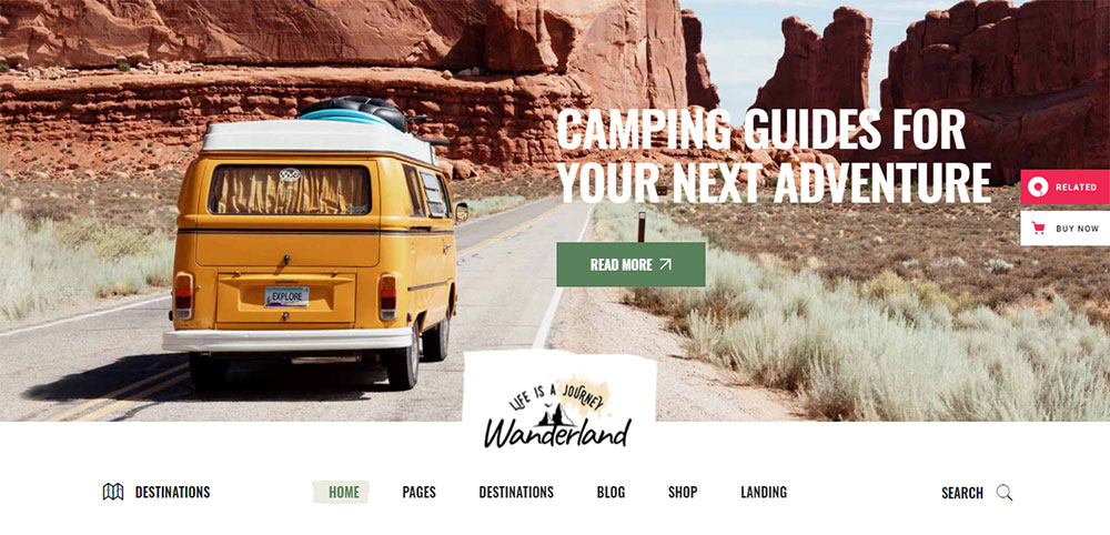 Wanderland is an inspiring template for travel blogs. It supports WooCommerce, so you have the option to start an online store.
