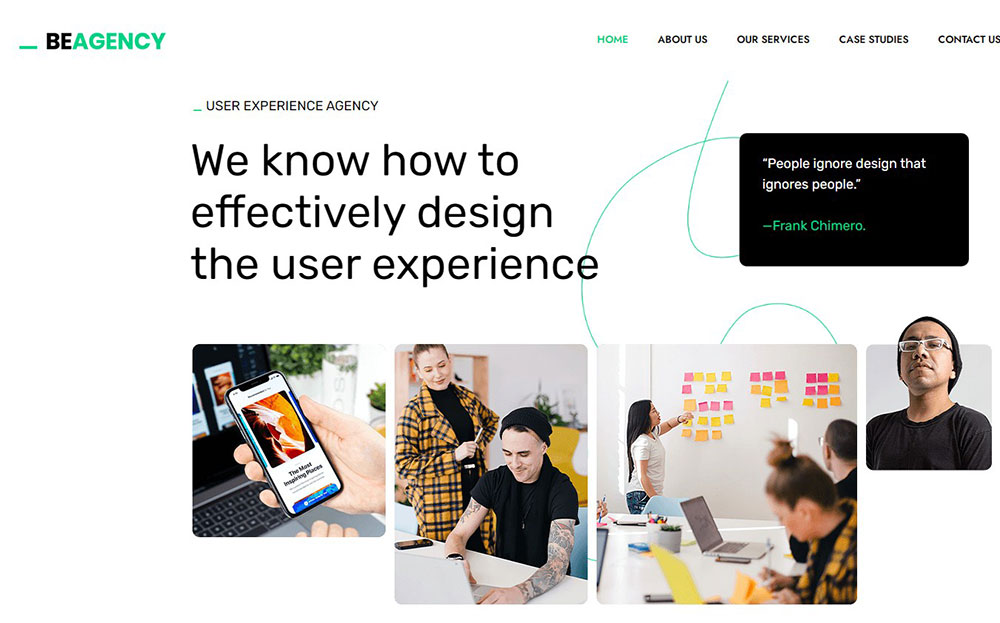 It is modern and has some interesting creative touches. It presents information about services, packages, and case studies in a professional way.