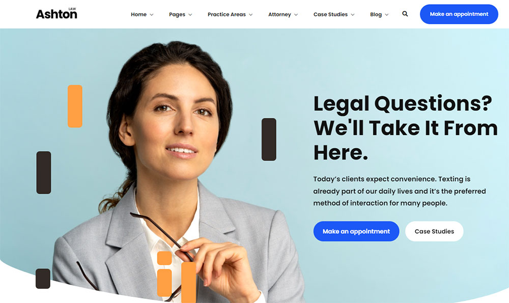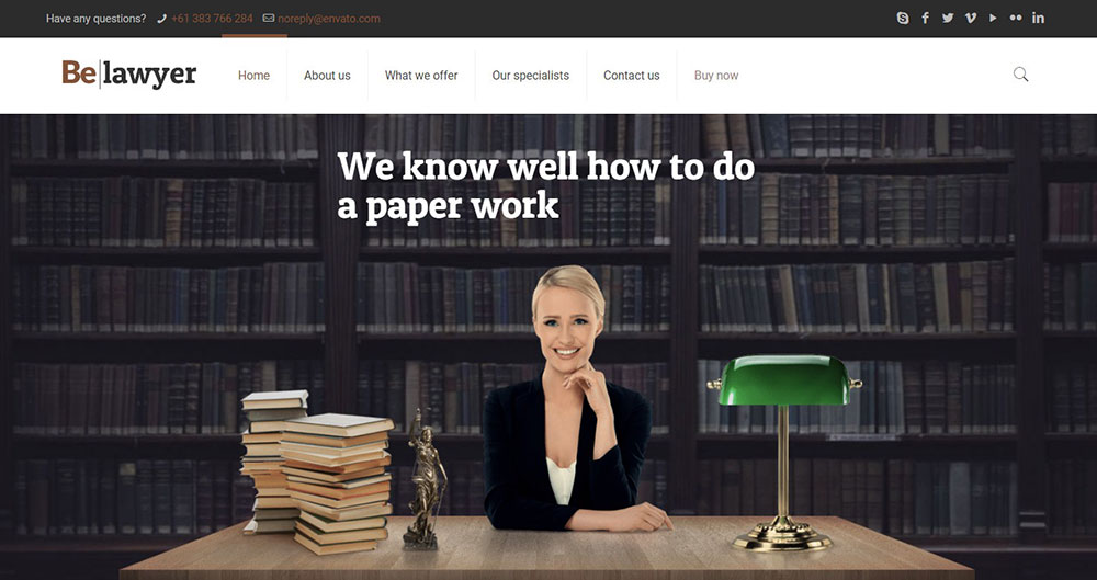 This multipurpose theme takes pride in its eye-catching design and easy navigation. Its specific purpose is to create websites for lawyers, consultants, and others.