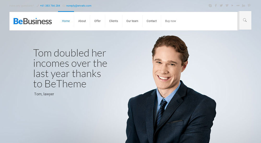 This responsive theme is a toolkit that always makes the perfect website. The design helps a business to grow and become more visible on the internet.