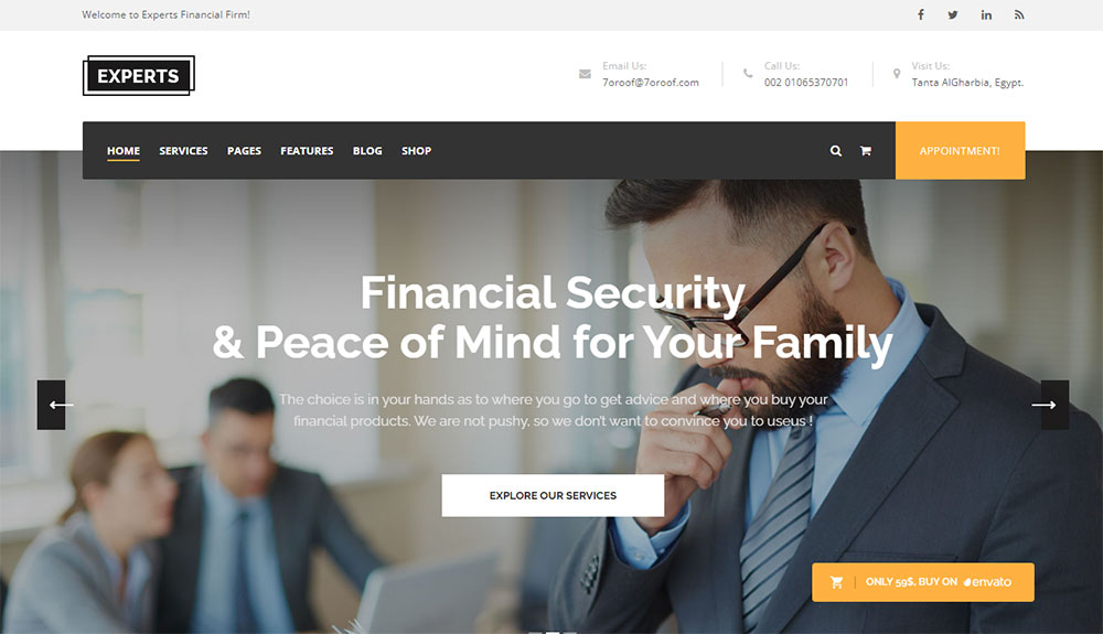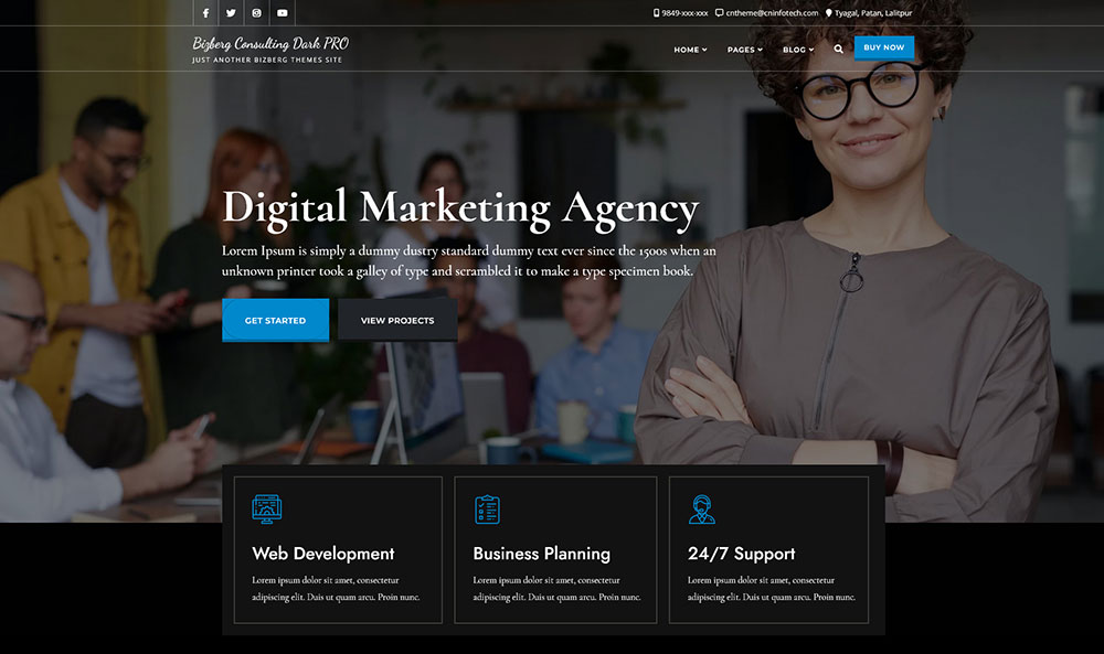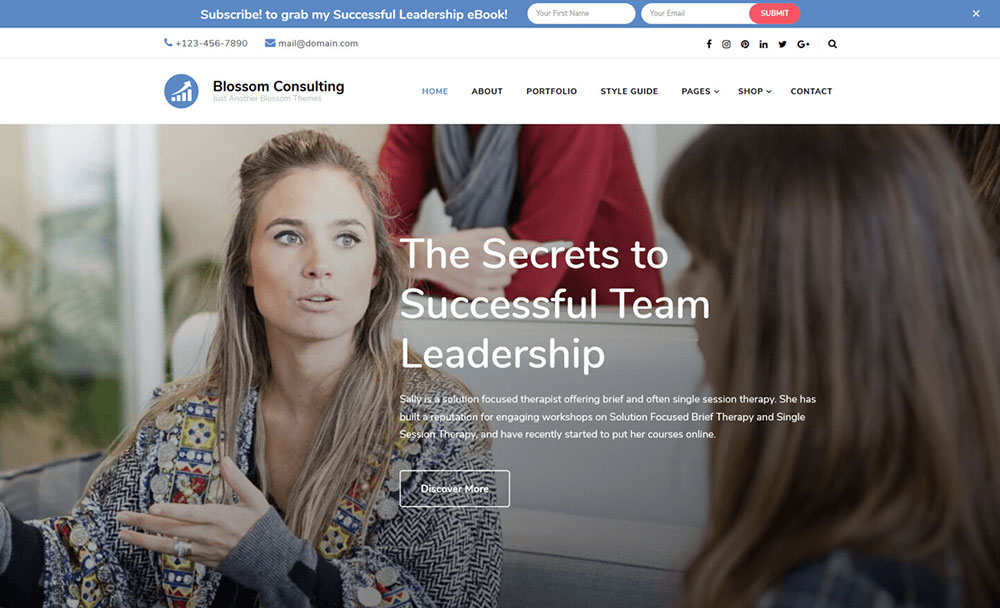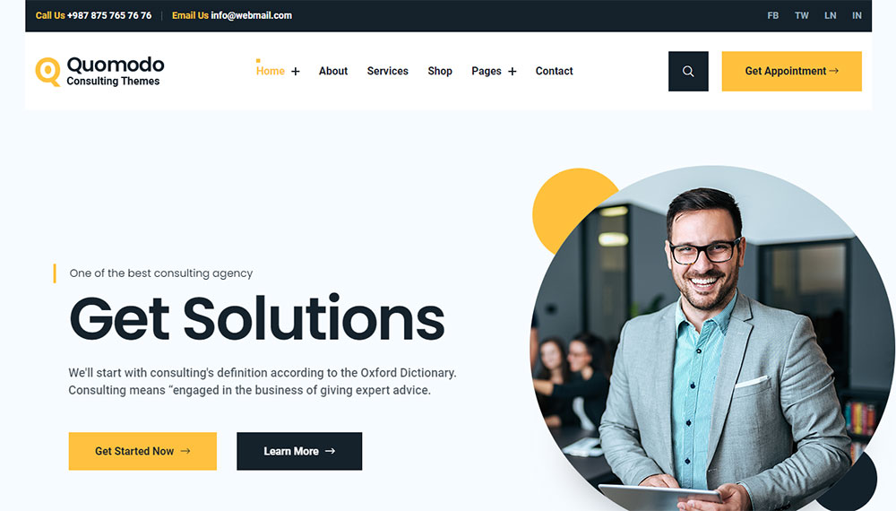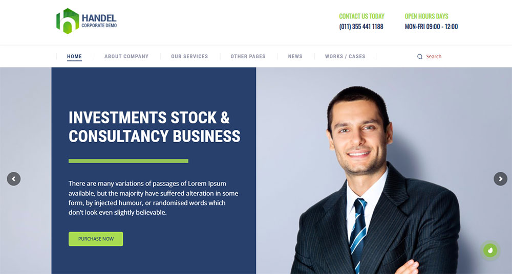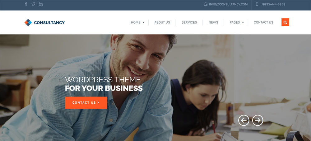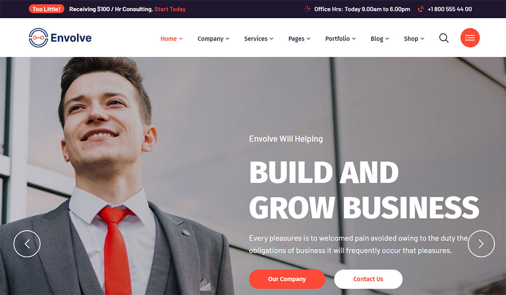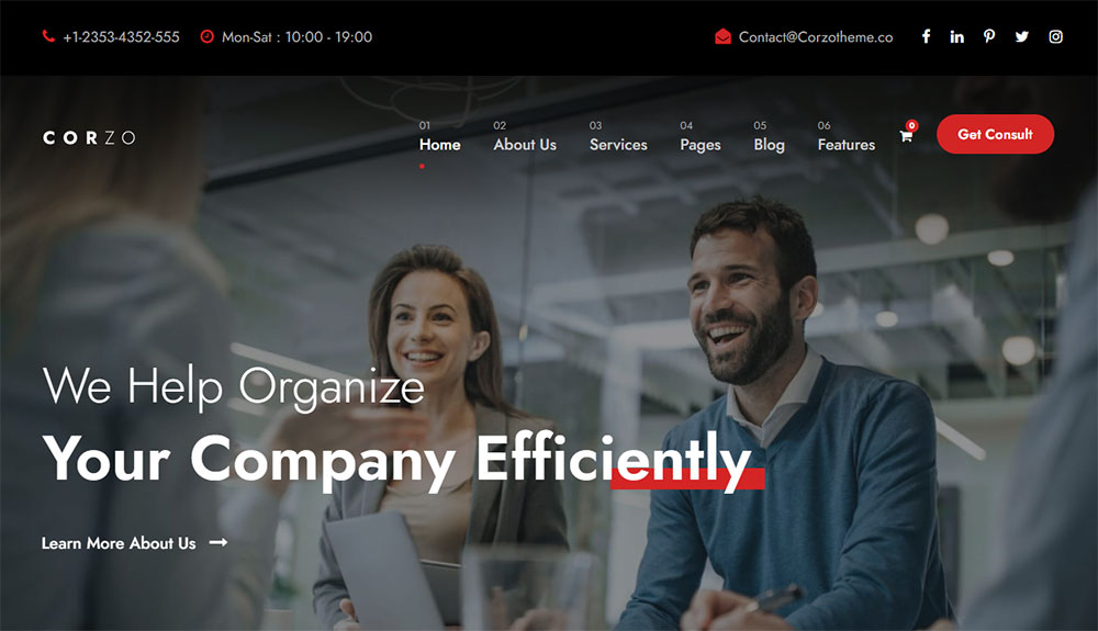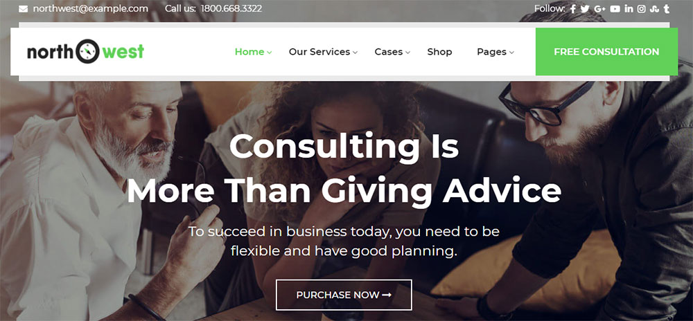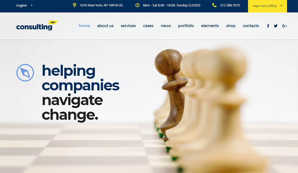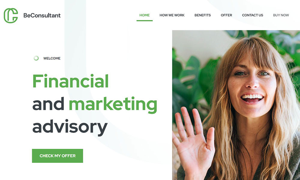 This is one of the best choices for small business consulting companies. It has more than ten ready-made home pages, as well as templates for other website sections.