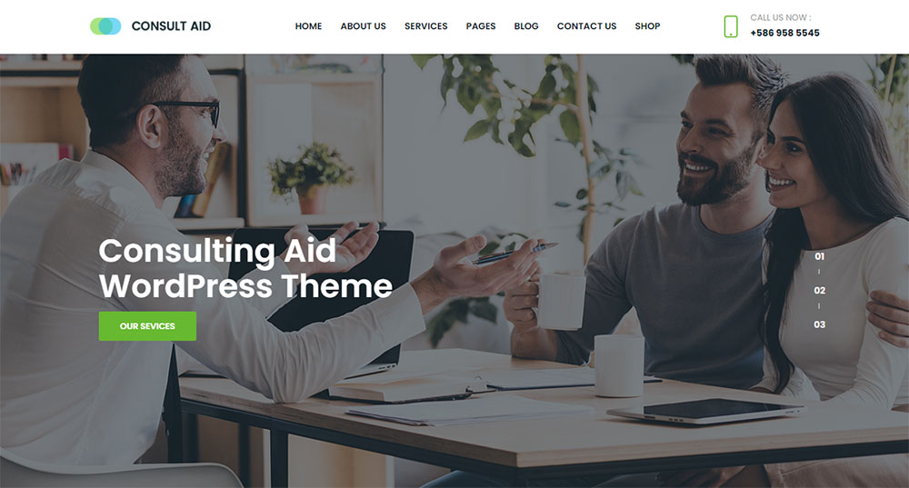 The second on this list of best consulting WordPress themes is Consult Aid. This theme contains everything business consultants and consulting firms need.