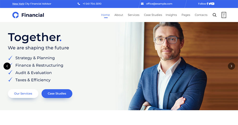 FinancePlus is one of the best consulting WordPress themes available. It is most suitable for advisors, accountants, regulation companies, and general corporate websites.
