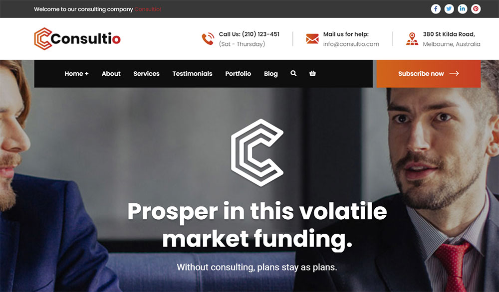 Consultio is the next consulting WordPress theme. It offers multipage websites with different page layouts.