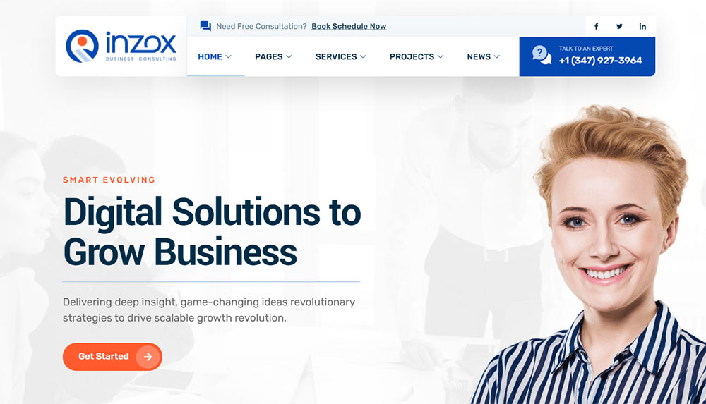 Inzox is very easy to use. This WordPress theme is great for coaching, insurance, tax help, and investment websites.