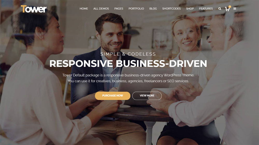 The Tower theme is particularly oriented at businesses. It is a multipurpose theme.