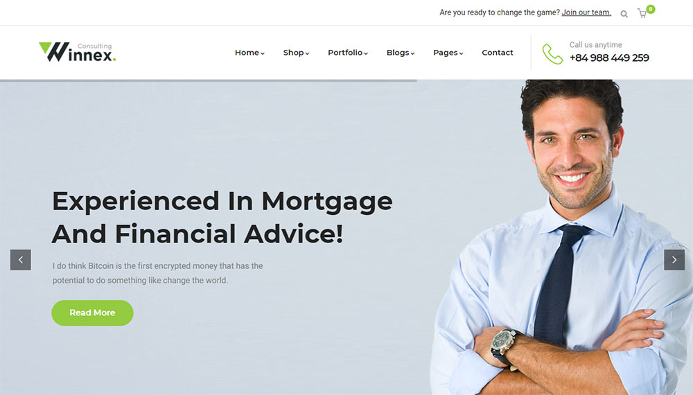 Last on this list of the best WordPress themes for consultants is Winnex. Its design appeals to consultants and business coaches.