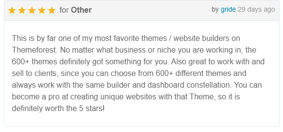 But this is us talking about our theme. Why believe us, right? Here’s what a user had to say on Themeforest recently: