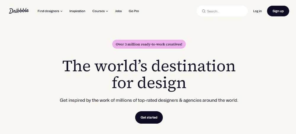 Dribbble’s portfolio platform utilizes a grid layout, embodying a modern approach to adaptive web design.