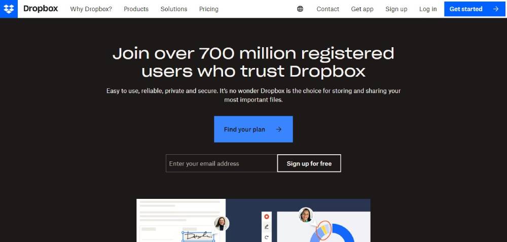 The essence of fluid layouts shines in Dropbox's responsive website design, seamlessly adapting to different screen sizes and resolutions.