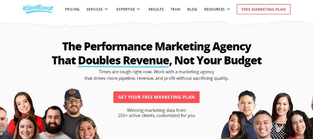 Klientboost employs a vibrant design with compelling viewport settings, creating an inviting user experience.