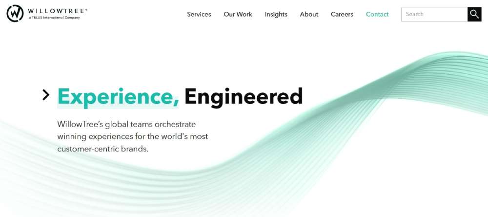 WillowTree showcases a sophisticated design that mirrors their bespoke app development services.