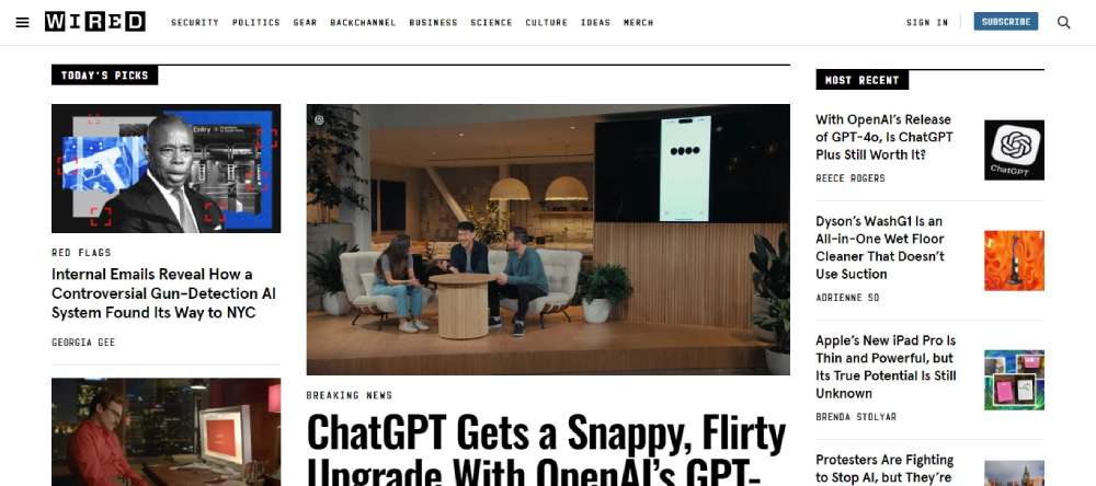 WIRED’s online presence commands attention with a dynamic responsive design, incorporating media features that adjust to the viewer's environment. The seamless shift between multimedia content types caters to a technology-savvy audience, maintaining engagement through various user interaction points.