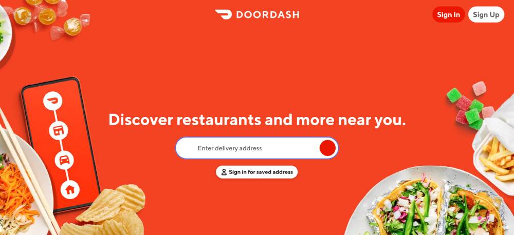 DoorDash’s call-to-action buttons are not just visually appealing but also expertly engineered to optimize the user journey from landing page to purchase. The strategic use of color and text elevates the overall user experience, enhancing engagement and driving sales.