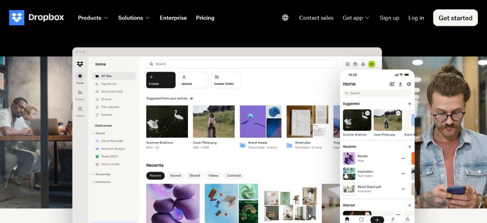 Dropbox employs persuasive design techniques to make their call-to-action buttons prominent and highly visible. The buttons use strong action words, encouraging immediate interaction and promoting an easy sign-up process. Coupled with effective use of whitespace, they drive user conversion effectively.