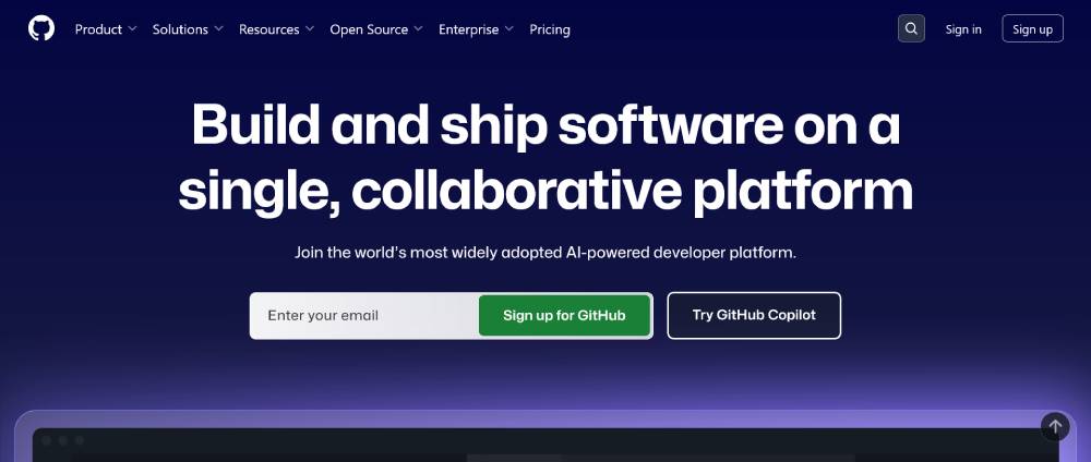 GitHub’s call-to-action buttons are optimized for developers, featuring clear, action-driven text and standout design. The buttons are strategically placed within the layout, ensuring ease of use and quick navigation through repositories, sign-ups, and collaborations.