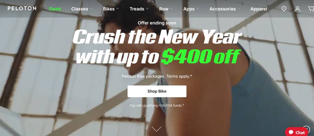 Peloton integrates visually striking call-to-action buttons that are crucial for user navigation and conversion. Each button is positioned to guide users effortlessly through product exploration and sign-up, backed by a strong aesthetic that aligns with their brand’s innovation and fitness focus.