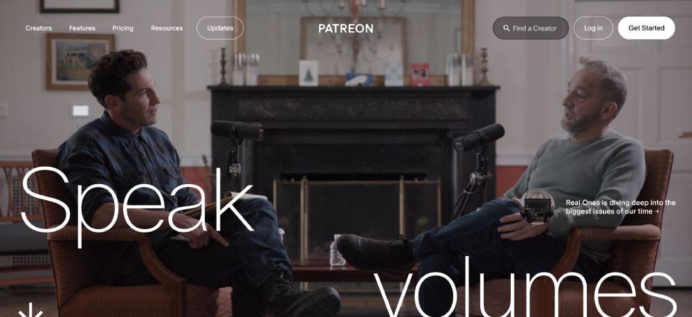 Patreon’s call-to-action buttons integrate seamlessly into its layout, promoting easy user interaction with creators. The buttons use persuasive language and eye-catching colors to drive immediate actions, whether it's supporting a creator or learning more about the platform.