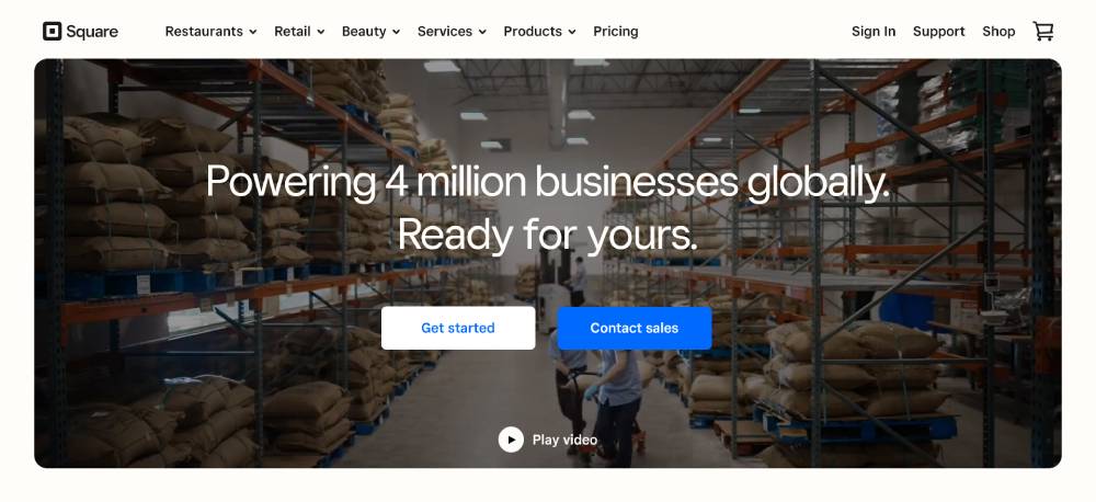 Square uses call-to-action buttons that blend seamlessly with its minimalist design while still capturing user attention. These buttons are thoughtfully placed to lead visitors through product information and purchase processes cleanly and effectively.
