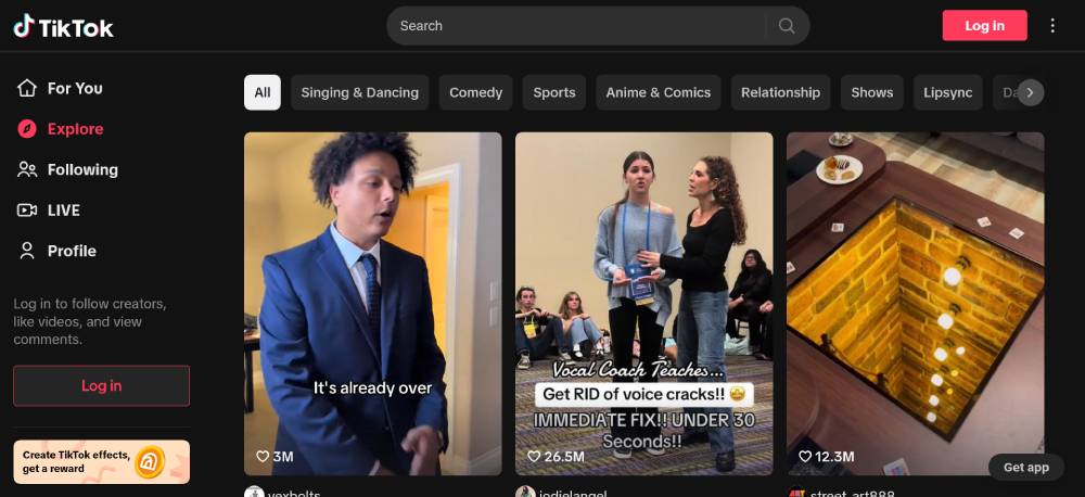 TikTok features call-to-action buttons that are strategically integrated into the vibrant visual layout of the site. These buttons use direct language to guide users towards downloading the app, promoting videos, or engaging with content, maximizing click-through rates.