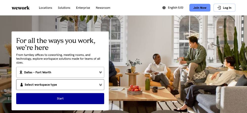WeWork’s call-to-action buttons are designed for maximum engagement, using a blend of strategic placement and appealing design. The buttons guide potential customers through workspace options and tour bookings, enhancing the overall user journey and driving higher conversion rates.