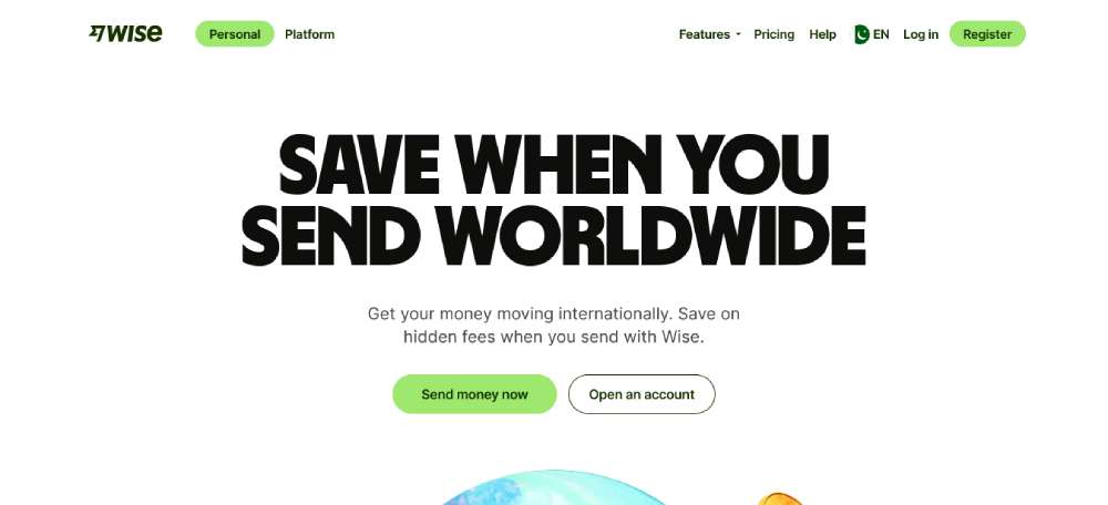 Wise incorporates call-to-action buttons that are both functional and aesthetically pleasing. The buttons emphasize quick action, promoting ease of use for international money transfers and maintaining a seamless user experience with effective color and placement.